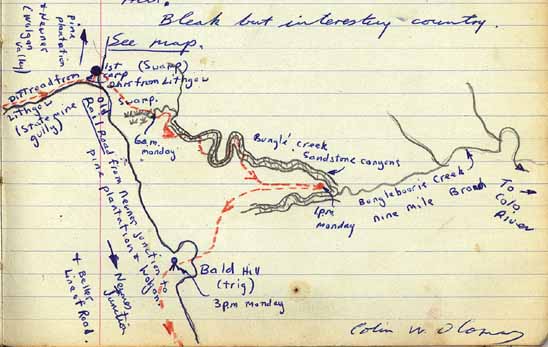 Above - Col Oloman's map of Bungleboori Creek South Branch. (From SUBW Logbook 1)