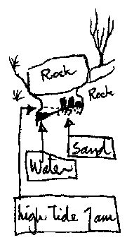I did not like the idea at first -- night on the creek and all that but this was to become a most welcome abode for the next two nights. The stream itself took up less than half the floor area (for the first night at least). It fornmed a clear deep pool against the far wall -- good for kicking hot tins into: FISSSSSSSUUUP