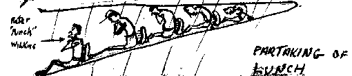 You can't imagine how wonderful it is to come to a clear flowing creek in the middle of the day and drop your pack and drink your fill (and put your shoulders back into position) and then take off all your boots & socks & bandages and just sit with your feet in the water till you are sufficiently restored to think about your lunch rations; and then to have a snooze before setting off again. Or after tea in the camp at night -- your goulash sits quiet and warm in your tummy and you lie around the flickering fire talking into the night. And if you've never had a really good wash in a quiet cliff guarded creek called the Yarramun, as beautiful as its name, then you really haven't lived. Or if you haven't dragged yourself up mountains or through prickly vine & jungle to glimpse a blue fairyland of peaks and high places, or if the sides of the world haven't flattened out in front of you and left you & the breeze free to tread a wide expanse of grassland, then you have some real pleasure in store for you. And if you haven't apprehensively felt you were walking to a manly death, penetrating the secrets of creeks guarded by great cliffs and canyons, or scaled the Breadknife, then you're probably one of many, but I think it would be good to have done them. And if you haven't eat and slept for a day & 2 nights after walking yourself into the ground, then you don't know what enjoyment is.