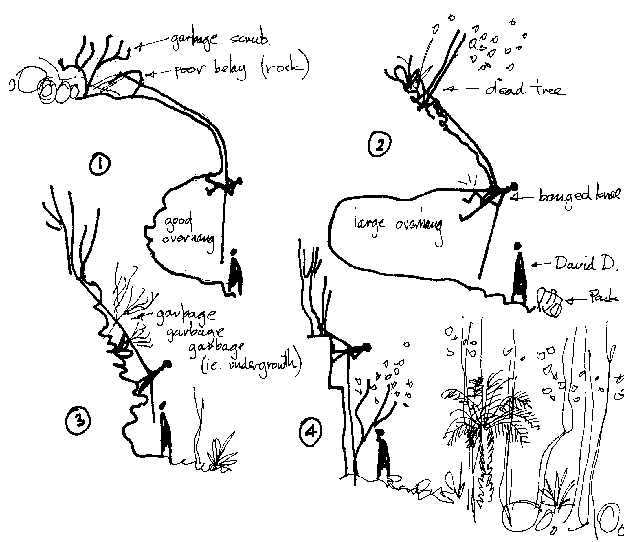 Above - From the SUBW logbook, Volume 2, a sketch showing an abseiling route to Burning Palms commonly used by SUBW