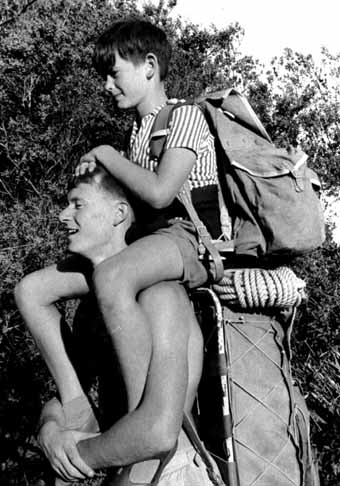 Above - Athol Abrahams carrying Lowan Turton, Boudi, 1965. Photo by Merinda Turton, courtesy of Flora Turton.