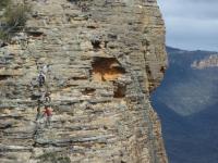 With the weather steadily improving the cameras all came out, and our movement along the cliff tops was slow as each pagoda was climbed and each cave examined. Returning to the large defile from the day before we moved east, which was probably a mistake, although it did take us along an impressive shale ledge and eventually, after a couple false starts, down a lovely, lush green canyon that finished next to a small waterfall and stunning overhang.