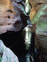 Soon after came another, more impressive abseil. After looking at a couple options we decided to take the more impressive one down the narrow slot next to a chockstone.