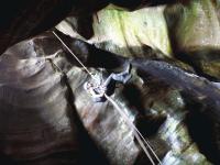 Around the corner it opened out a bit, offering us our first glimpse of the valley below. From the top of the drop only two words came to mind… f**k me! It looked far too long for our ropes, but there was no other option.