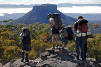 On Saturday morning we met in the Blackheath car park, and after coffee and snacks we set off for the Wolgan Road. Just past the Angus Place Colliery, we turned off and headed up the fire trail that climbs onto the divide. Just before the steep descent to Baal Bone Gap, we parked the cars and shouldered our packs. It was not too far to Baal Bone gap where we could fill up our water containers at the pressure reducing station. We were not the only ones there - a large part of 4WD'ers had turned up.